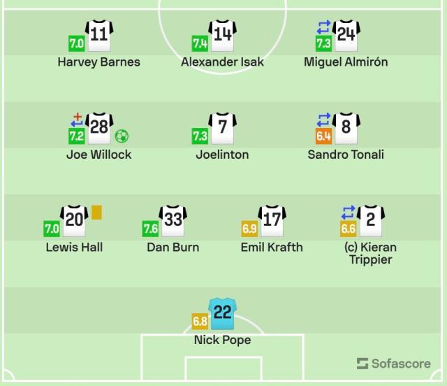 然而好景不长,进球功臣威洛克第15分钟就因伤退下火线,而托纳利可能因为久疏战阵,随后的发挥逐渐平庸,也是为了保护刚复出的他,主帅埃迪·豪在第62分钟用朗斯塔夫将其换下。在数据机构Sofascore的全场评分中,出场大约一小时的托纳利仅得到6.4分,比及格稍高,但位列全队最低。不过这并不重要,重要的是他回来了。有球迷化用绿洲乐队加拉格尔兄弟复合的海报,来比喻托纳利与埃迪·豪的“重聚”,让人莞尔。